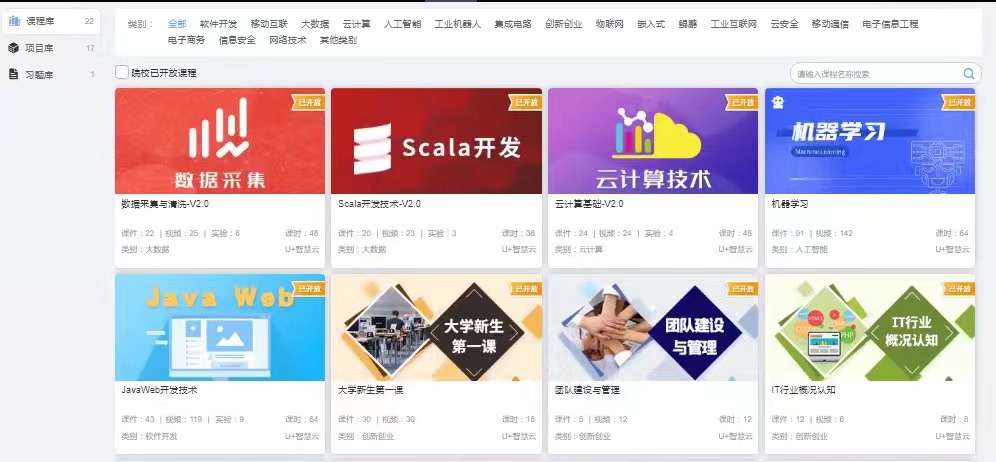 工程教育云实训室配备的教学平台资源可以支撑线上线下混合式教学及教学管理,也可用于软件技术专业学生进行《程序设计基础》、《数据库原理及应用》、《Linux操作系统与应用》、《软件测试》、《Java Web开发》、《Web前端开发》等课程的实训和仿真教学,是一站式智慧教学管理及实训平台。