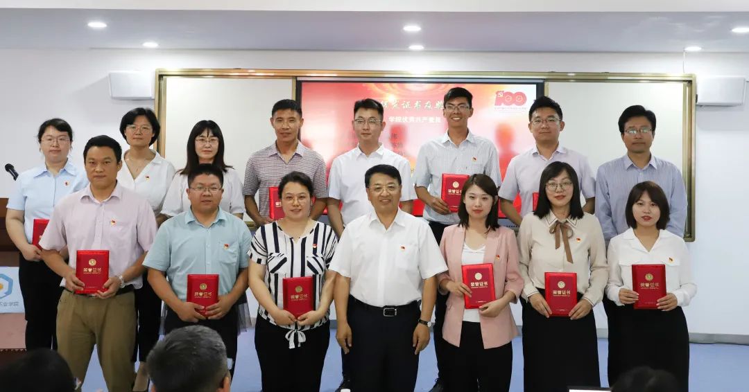 为隆重庆祝中国共产党建党100周年,进一步增强学院各级党组织的凝聚力和战斗力,充分发挥党员的先锋模范作用,7月1日下午2点,学院于机电楼B402召开“永远跟党走 启航新征程”建党100周年庆祝大会。大会对学院评选出来的优秀共产党员、学习强国学习标兵进行了表彰,并为获奖人员颁发证书及奖杯。