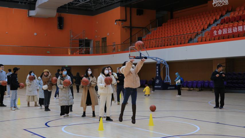 在篮球馆,周文祥老师和顾斌老师带领亲属们举办了一场投篮友谊赛。伴随着投球、进球,现场气氛更加活跃,也拓展了各位教师和家人之间的团结凝聚力。