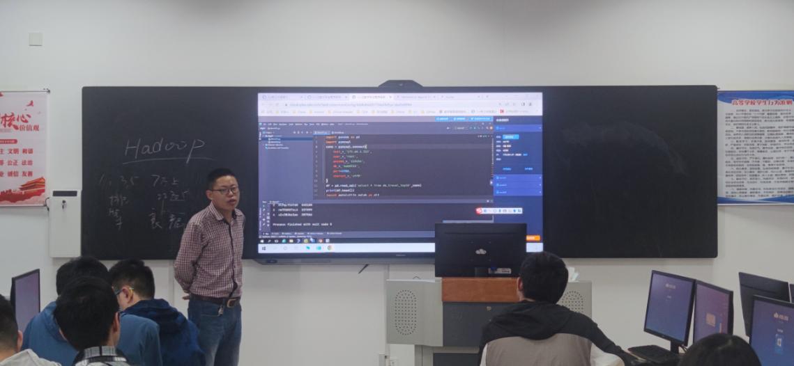 在大数据实训室,面向大数据专业的学生们,孔祥兵工程师主要讲解当下企业中常用的离线项目框架,从数据采集、数据清洗、数据分析、数据迁移、数据可视化、工作流调度几个模块阐述了大数据的数据生命周期,并通过我校的私有云演示项目,使学生们提前了解企业大数据项目流程,提前做好职业规划。