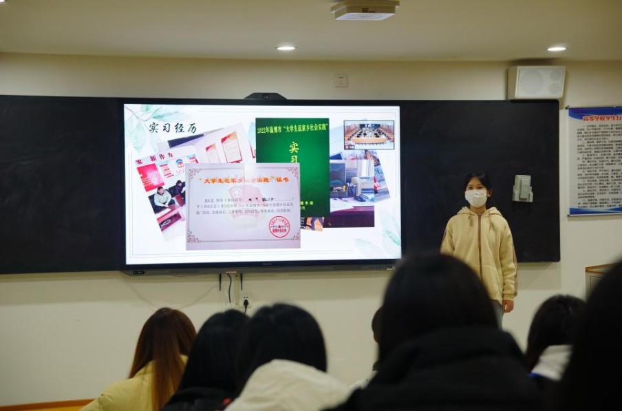 活动首先邀请了2021级优秀学生代表李欣莹同学介绍“青鸟计划”的主要内容,并分享参与“青鸟计划”的经验和收获,鼓励同学们积极报名,以青春之名描绘青春画卷,为家乡建设贡献自身的一份力量。