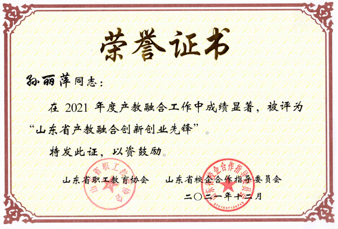 敬职业精技能,争先锋敢超越。教师们积极参加各类竞赛、教学活动,并取得了出色的成绩。荣获山东省产教融合创新创业先锋、山东省“技能兴鲁”职业技能大赛、校级“优质课”等奖项,指导学生参加山东省职业技能大赛等各类大赛并获奖。
