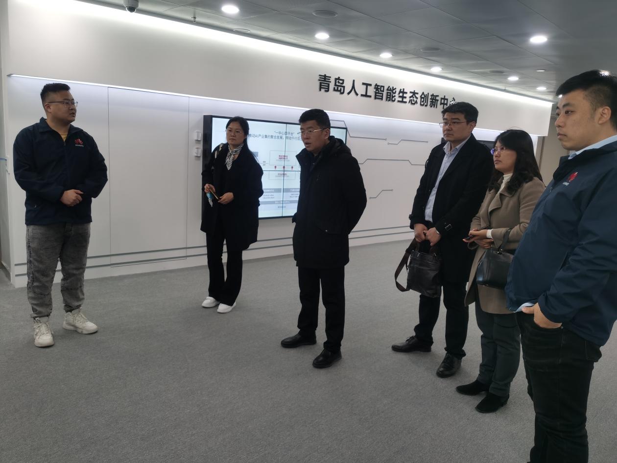 随后,考察团参观了青岛人工智能计算中心,详细了解了计算中心的建设情况、算力算能部署情况,以及当前企业以及科研机构的使用情况。