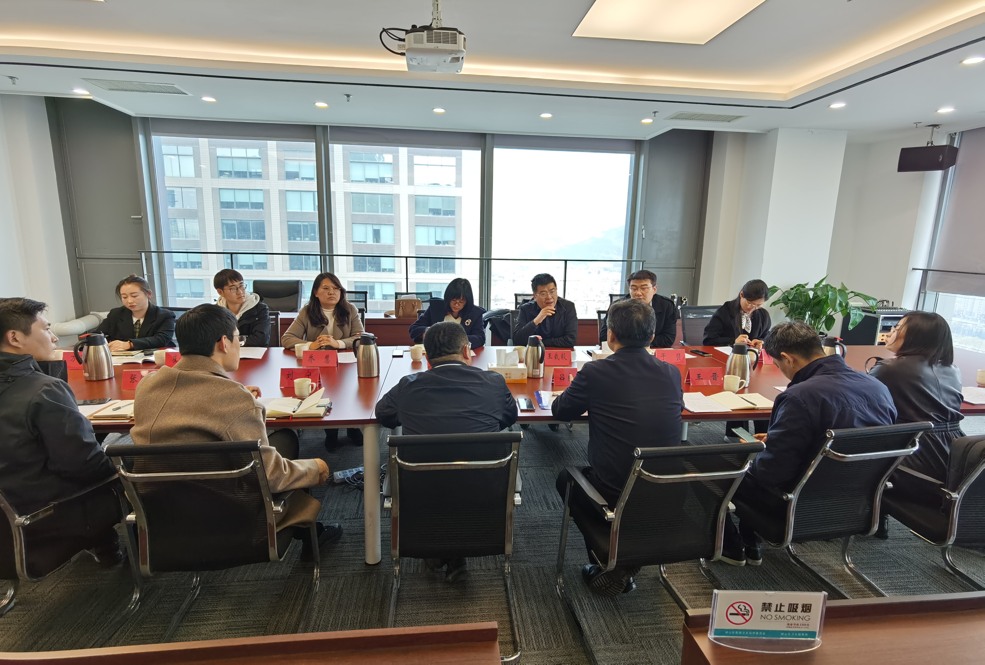 最后,考察团与崂山区科创委进行了座谈交流。青岛虚拟现实研究院有限公司、青岛迪生新星视觉科技有限公司、青岛数智孪生科技有限公司、山东观享世界数字科技有限公司、青岛歌尔视界科技有限公司、青岛星鲨虚拟现实技术研究院等区内企业参加座谈。座谈会上,信息工程学院副院长孙丽萍介绍了学院当前的发展情况,与会企业领导详细介绍了企业的主营业务、发展规划、人才需求等基本情况,政校企三方围绕技术开发、人才培养、校企合作等方面展开了热烈的讨论。