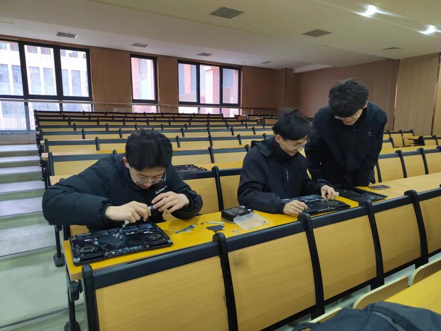随后一同学描述笔记本电脑使用一会就发烫,不知道是什么原因造成的,志愿服务团队的一名同学拿起螺丝刀,打开电脑后盖,仔细用小刷子清除散热器上的灰尘,很快发现了电脑发烫的原因,是由于计算机内部积聚了大量灰尘。另有一同学电脑在使用过程中异常卡顿,严重影响日常学习和办公,志愿服务成员在仔细检查他的电脑之后,发现导致该情况的原因是内存不足,建议从网上购买内存条扩大内存容量。