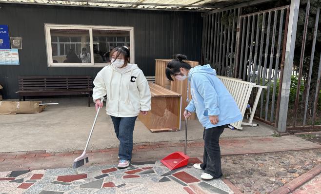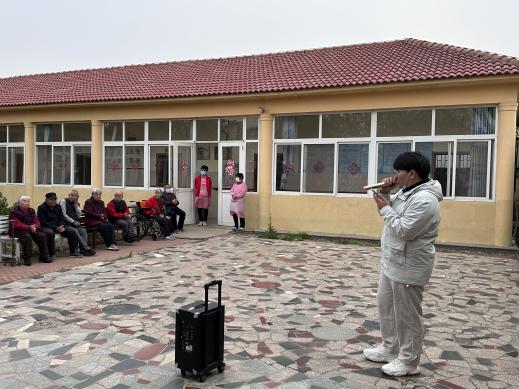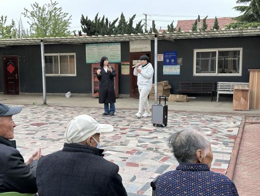 信息工程学院李玉龙、张雨婷两位同学为老人们准备了歌曲《涛声依旧》《甜蜜蜜》,旋律悠扬,歌声优美,两曲作罢,掌声不息。刚开始的时候同学们还有些放不开,但看到了老人们和蔼慈祥的面容后大受鼓舞,二人合唱《七里香》正式结束了此次活动。表演结束后同学们清扫了整个庭院并与老人合影留念。