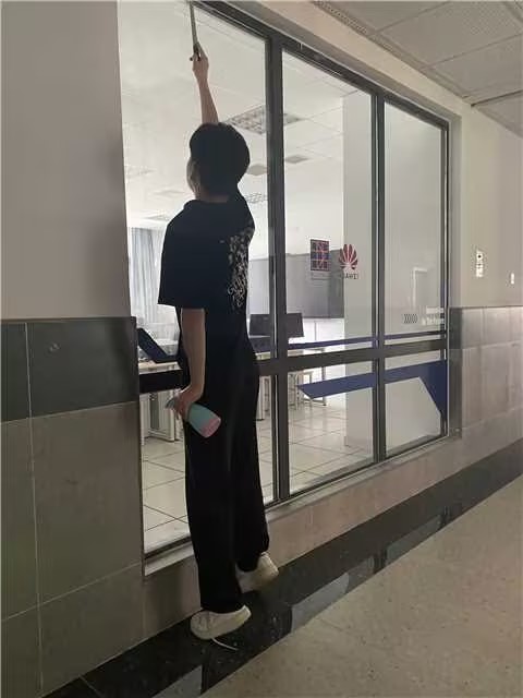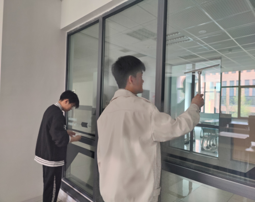 一屋不扫,何以扫天下。校内劳动的同学热火朝天,誓要将卫生清扫进行到底。负责清理的同学都意识到了卫生环境代表着我们信息工程学院的整体形象,全都十分认真地清理着玻璃上的灰尘、污渍,不仅如此,更多的同学自觉加入到了清理教室、机房的大队伍之中,擦课桌、讲台,扫地、拖地,排列桌子,擦黑板……同学们各司其职的同时又相互配合,将本来庞大的工作量缩减成了每一小部分,高效且迅速地完成了劳动任务。