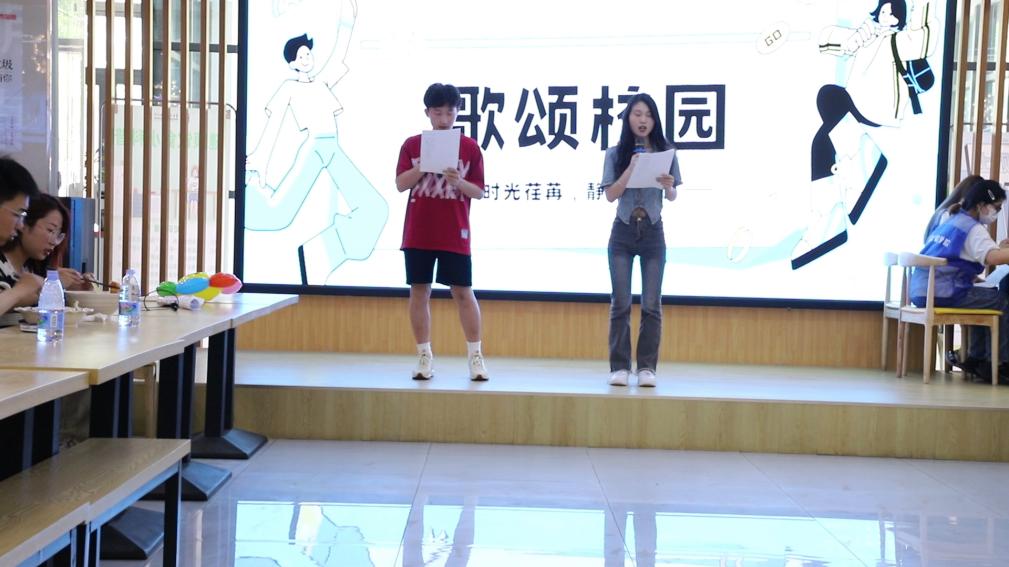 最后,大家齐聚美泽餐厅一楼观看文艺汇演,信息工程学院党支部书记潘克江致辞,对各位亲属的到来表示热烈的欢迎,他讲到:“我们学院发展取得的一系列成功,离不开全体师生的努力和亲人们的支持与关心,我们非常感激能够与家属们共同见证学院的发展和成长,让我们在共同努力下,一起创造更加美好的明天!”随后大家观看学院宣传片,让来访的家属们更深刻地了解了学院的发展。在就餐过程中,信息工程学院和学生服务中心学生为家属们带来了一场精彩绝伦的才艺表演,感受的是生活,传达的是感动,分享的是快乐。