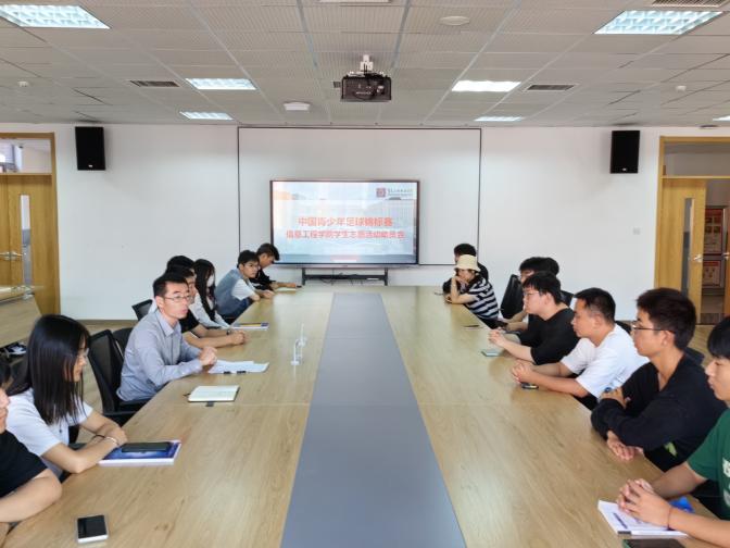 9月28日下午,信息工程学院召开青少年足球锦标赛志愿服务活动动员会议,信息工程学院党支部书记潘克江、学生工作负责人王阳、辅导员苏尔健和30名学生志愿者参加会议,潘克江为此次志愿活动提出三点要求,一是外出参加志愿服务活动一定要注意安全,保护好自己;二是服从主办方工作要求,遵守赛会纪律,用饱满的热情对待此次志愿服务活动;三是在外期间同学之间要互相帮助,注重团队协作,要为此次足球锦标赛提供高标准、高质量的志愿服务。