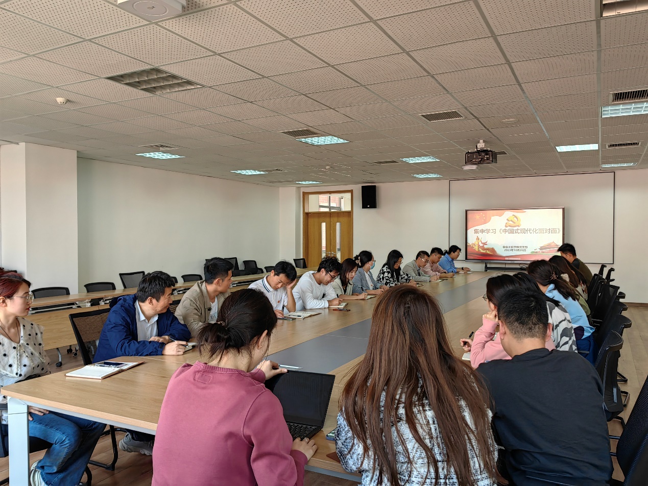 信息工程学院党支部宣传委员王珊珊同志领学了《中国式现代化面对面》,整本解读了这本理论书籍出版的意义和主要涵盖的内容,并对内容进行细致深入的学习。通过集中学习,党员们不仅从思想认识上加强了对中国式现代化具体内容的理解和把握,而且从践行意识上有了全面深刻的觉悟。