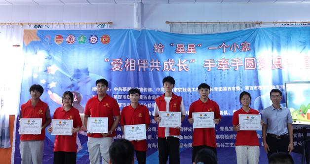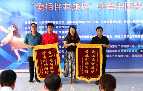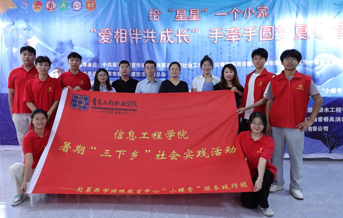 为积极响应团中央、学院关于暑期“三下乡”社会实践活动的号召,引导和帮助青年学生在社会课堂中受教育、长才干、作贡献,争做有理想、敢担当、能吃苦、肯奋斗的新时代好青年,青岛工程职业学院信息工程学院“小螺号”服务践行团于近期前往莱西市特殊教育服务中心,开展了为期10天的残障儿童“爱相伴共成长”手牵手圆梦夏令营支教活动,7名志愿者与残障儿童一对一结对。本次夏令营活动得到了中共莱西市委宣传部、中共莱西市社会工作部、共青团莱西市委、莱西市教育和体育局、莱西市残联、莱西市民政局、莱西市慈善总会、与你同行公益服务中心的支持。活动期间,信息工程学院副院长孙丽萍、党支部书记潘克江前往莱西探望志愿者,并参与结营活动。