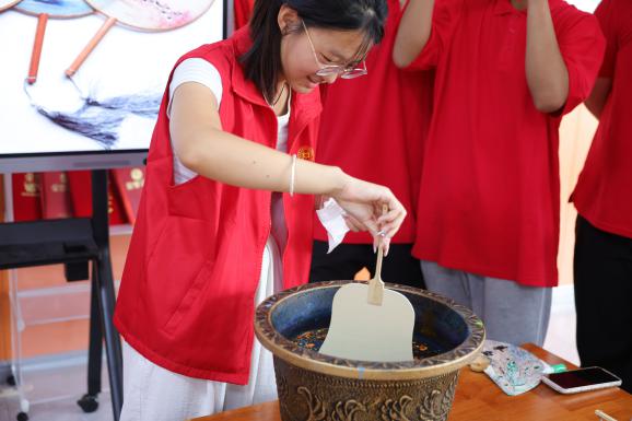 志愿者借助图片、视频,用简单通俗的语言向孩子们讲解了西柏坡精神,通过讲述革命先烈的英勇事迹,增强了孩子们的爱国情怀和民族自豪感。同时,志愿者向孩子们介绍了漆扇的起源与历史发展,并带领大家进行中国非遗漆扇制作,亲手体验了传统工艺的魅力与乐趣,增强了孩子们对中华文化的认同与热爱。爱国情怀与文化传承相辅相成,共同铸就了孩子们的精神家园,激励着他们勇往直前,为祖国的繁荣昌盛贡献自己的力量。