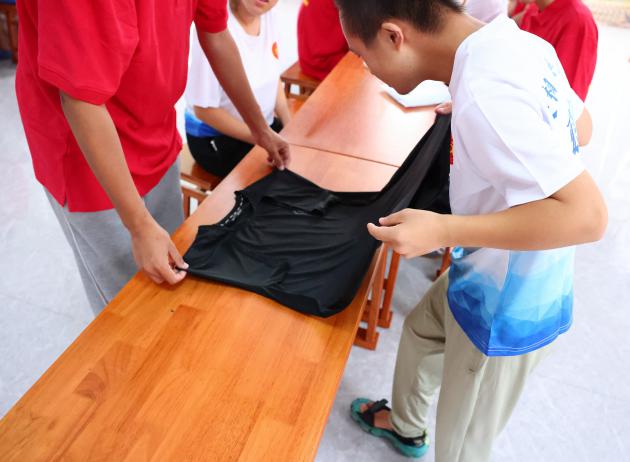 志愿者开展了生活技巧与自理能力提升课程。志愿者用简单语言和图片介绍衣物整理和叠被子的技巧,并耐心指导孩子们动手实践。在文明礼仪课上,志愿者向孩子们介绍了基本的文明用语、社交礼仪及表达方式,并通过情景模拟、小游戏的方式加深记忆理解,为他们融入社会打下了坚实的基础。同时,志愿者们带领孩子们学习音乐和舞蹈,引导他们可以借助音乐和肢体语言表达个人情感,从艺术中找到成长的力量。志愿者们在课程中营造了爱与包容的氛围,不断提升残障儿童的生活自理能力,帮助他们清晰表达想法需求,增强社会适应能力。