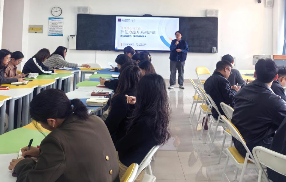 心理健康教育是学院立德树人的重要基石,学院着力健全分层培养机制,按照“专职精进、兼职赋能、全员提升”的路径,全力锻造一支专业化、高水平的心理健康教育工作队伍。为精准落实“健全分层培养、打造专业化团队”的工作要求,2025年,学院聚焦不同育人角色的核心能力需求,通过“内外兼修”的方式,推出系列心理专题培训。