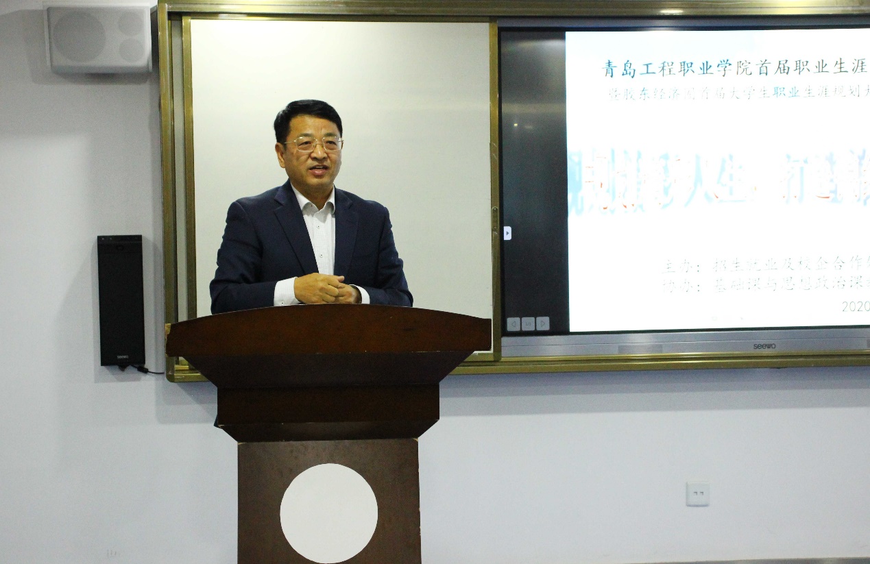 为引导学生树立正确的择业观和就业观,明确职业生涯发展方向,11月26日,青岛工程职业学院首届大学生职业生涯规划大赛暨胶东经济圈首届大学生职业生涯规划大赛选拔赛在机电学院302教室隆重举行。学院党委书记王铨、临时工作组领导邵凯出席本次大赛,特邀职业生涯规划专家李静老师和学校职业生涯指导教师徐春华、葛文莹、袁源、王淑青老师担任评委。
