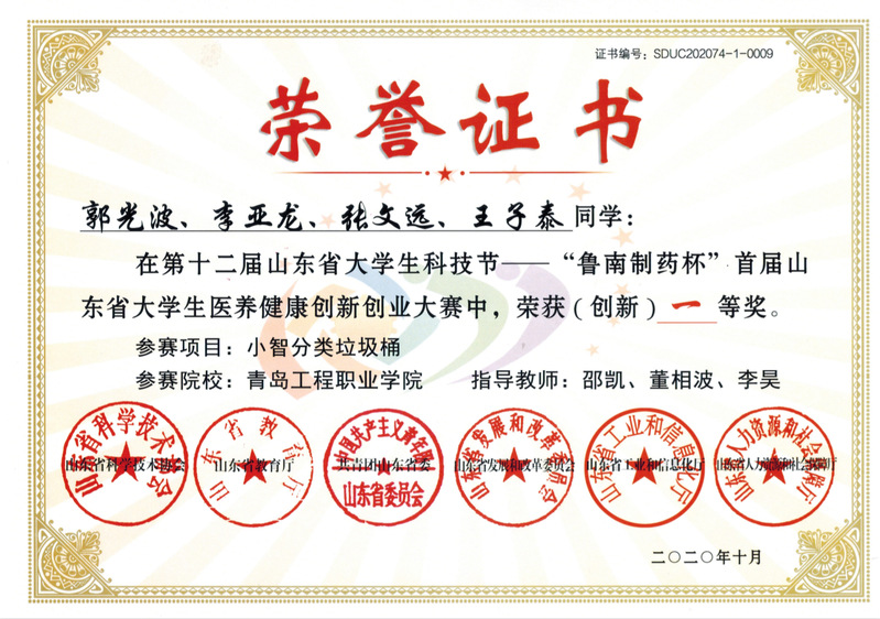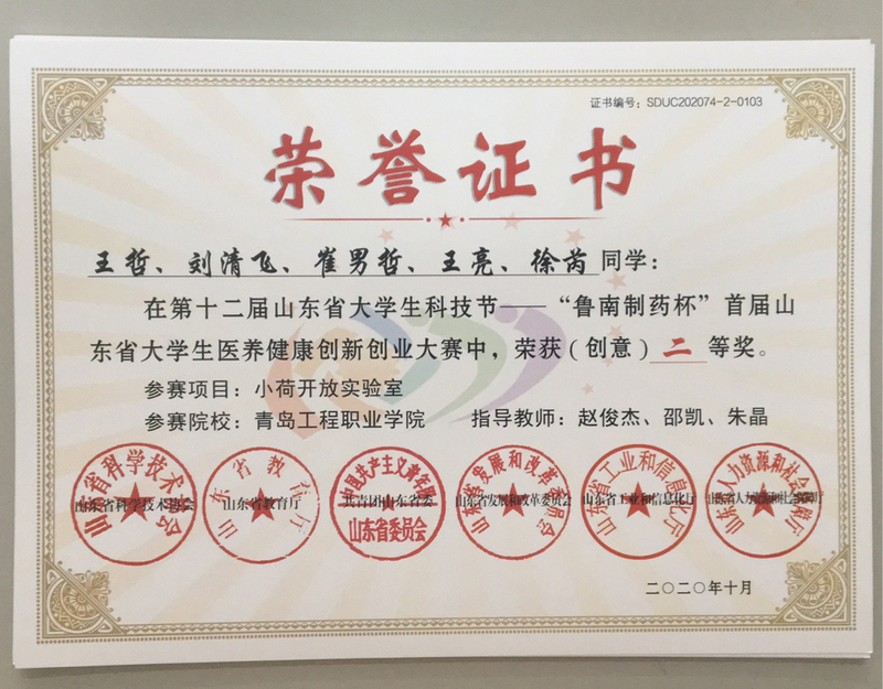 在近1200支本专院校队伍中,青岛工程职业学院董相波、李昊等老师指导参加的4个项目在5000多个项目中表现突出,共斩获一等奖两项,二等奖两项,另有四个项目获得三等奖,其中疫情防控竞技组学生发挥超常,在众多医学本专院校专业医学队伍中脱颖而出,获得一等奖第二名的好成绩!此次比赛青岛工程职业学院师生共组织参加了创新、创意、防控竞技3个组别的赛项,共组织申报了30个项目,其中无人机测温仪项目获得防控竞技组一等奖第二名,小智分类垃圾桶项目获的创新组的一等奖第四名,小荷开放实验室和东夷渔盐文化两个项目获得创意组二等奖。青岛工程职业学院将以此次比赛为契机掀起更高的医养健康创新创业热潮,尽快推进项目的落地,加速产学研的融合发展。
