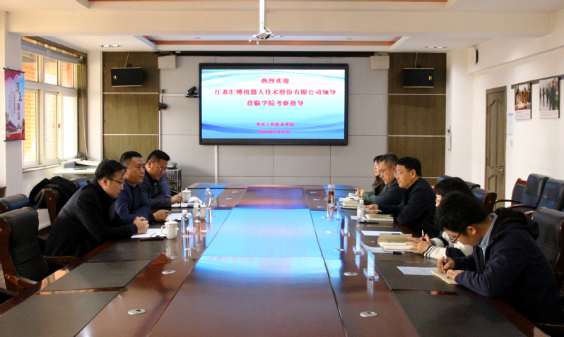 1月19日下午,江苏汇博机器人技术股份有限公司副总裁崔晓辉、销售总监吴坚、经理刘国盛来访青岛工程学院。学院党委书记王铨、副院长邵凯出席会议,教务处副处长朱晶、机电工程学院临时负责人冯飞、1+X工业机器人项目负责教师刘洋参会。