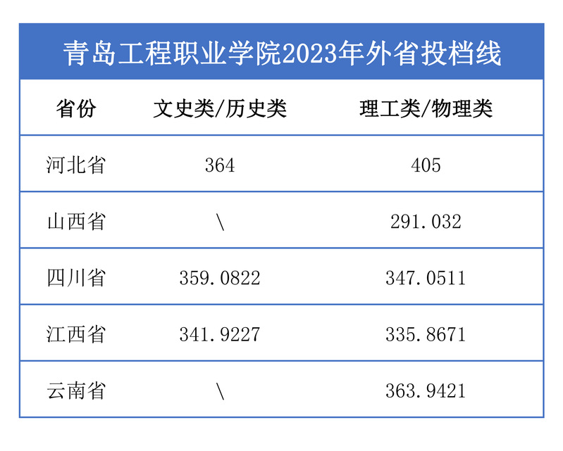 青岛工程职业学院2023年外省投档线