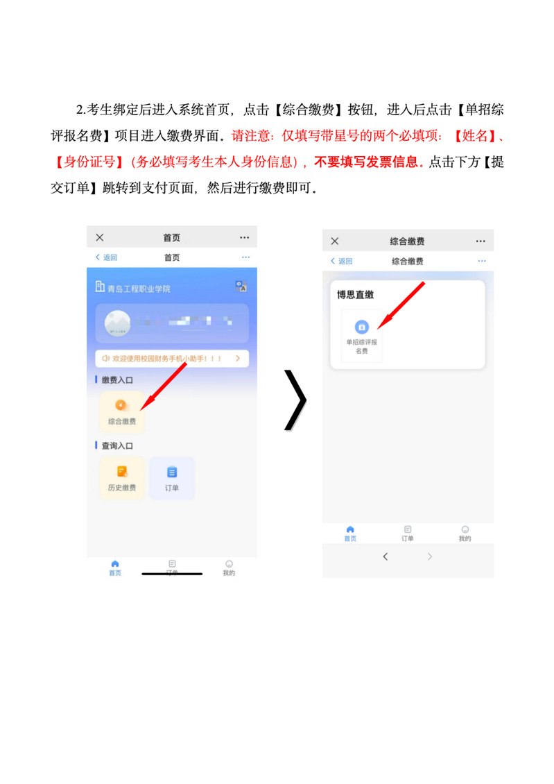 青岛工程职业学院2026年单独招生和综合评价招生缴费及考试须知
